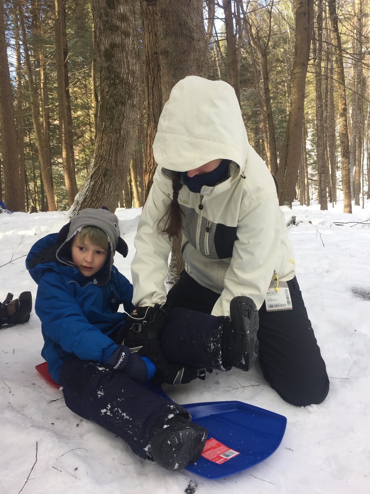 | "We are going sledding. Miss Skilling and Miss L are making a path." |